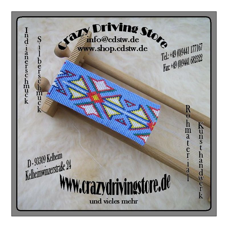 Die Größe der Perlen bestimmt die Feinheit des Muster . Wir sind im Besitz einiger Musterbücher mit Originalmustern der verschiedensten Indianerstämme . Gefertigt werden von uns fast alle Formen wie z.B. Streifen , Rosetten usw .