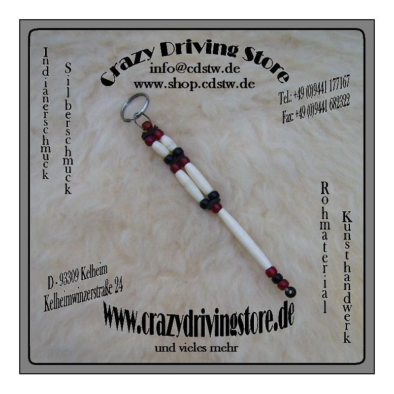 Beschreibung :   Schlüsselanhänger , kann auch andersweitig als Verzierung angebracht werden , zb. durch Einzug in Knopflöcher oder Hinterlegung hinter Conchas