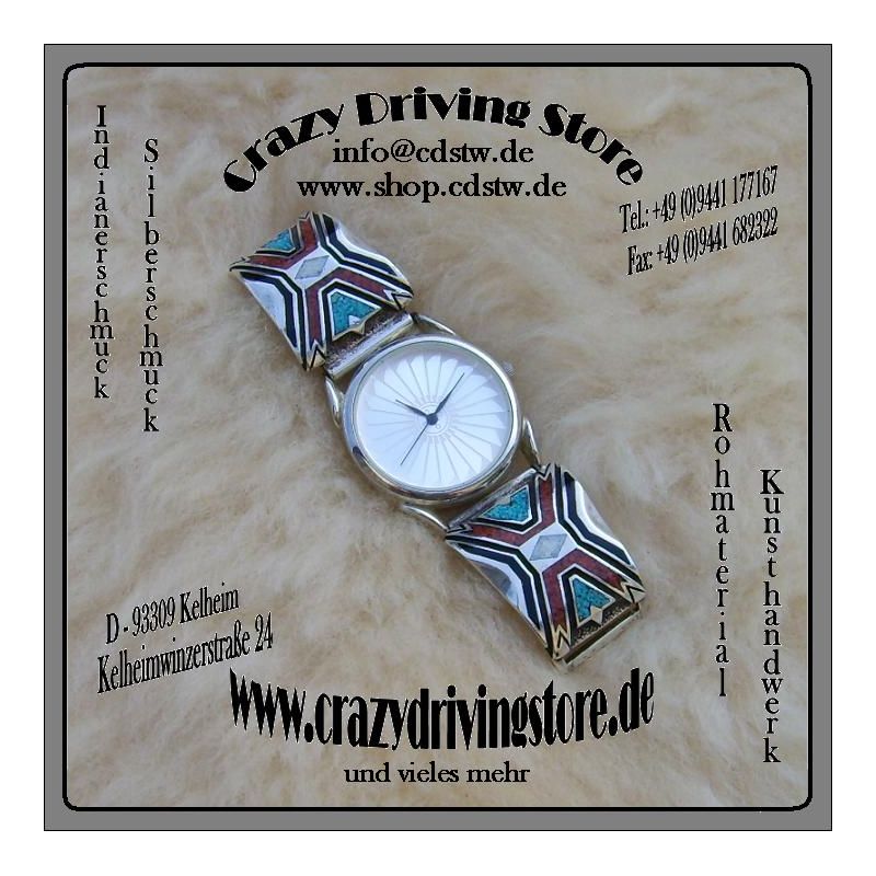 Beschreibung : Uhr , komplett , Herren , Einlegearbeit aus zermahlenen Steinen , aufwendig verarbeitet , Uhrenplatten aus Sterling-Silber , Uhrwerk und Flexband aus Edelstahl , Lieferung : komplett